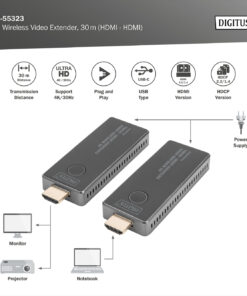 Erlebe eine kabelfreie Audio- und Videoübertragung in gestochen scharfem UHD 4K/30Hz mit dem 4K Wireless HDMI Extender. Das Set ermöglicht eine einfache Einrichtung ohne Treiber oder Software dank Plug & Play. Mit einer Reichweite von bis zu 30 Metern bei freier Sicht garantiert er eine zuverlässige Übertragung. Die AES 128-Bit-Verschlüsselung und das WPA2-Protokoll gewährleisten eine sichere Datenübertragung. Kompatibel mit HDMI 2.0/1.4 und HDCP 2.2/1.4. Ideal z. B. für Digital Signage, Konferenzräume und Schulungseinrichtungen: