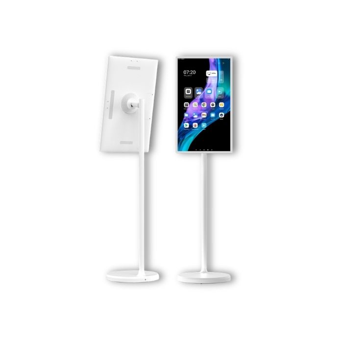Mit diesem Display präsentierst Du Deine Inhalte überall dort, wo sie wirken sollen – modern, mobil und ganz ohne Kabelsalat. Das elegante weiße Design fügt sich in jede Umgebung ein, während Display, Standfuß, Halterung und Akku-Bodenplatte ein sofort einsatzbereites Komplettsystem bilden. Einfach aufstellen, einschalten, begeistern.