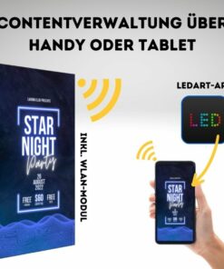 Handy, Tablet oder Android-PC: Lade Dir die App „Ledart“ (Android & iOS) herunter und verbinde Dich mit dem WLAN-Hotspot des Displays
