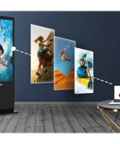 - Freistehendes, schlankes Design für moderne Räume: Das elegante, schlanke ePoster-Display fügt sich nahtlos in jede Umgebung ein. Mit seinem freistehenden Design wirft der All-in-One-Kiosk ansprechende Inhalte aus, die sich in jedem Raum von der Masse abheben.